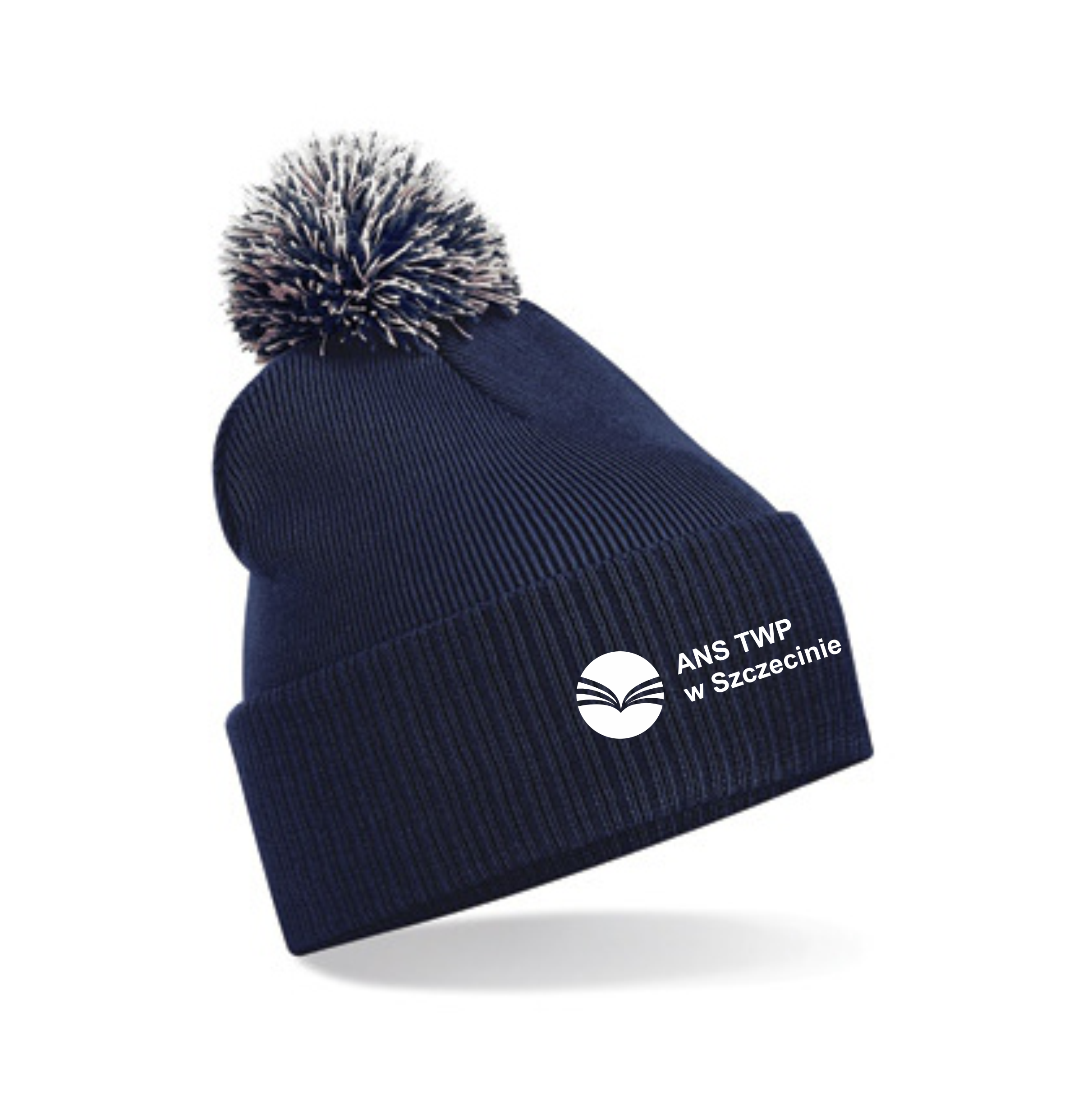 Czapka zimowa z pomponem z haftem AKADEMIA NAUK STOSOWANYCH W SZCZECINIE szkolna uczelnia