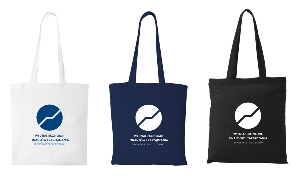 Torba bawełniana materiałowa z nadrukiem logo UNIWERSYTET SZCZECIŃSKI WYDZIAŁ EKONOMII FINANSÓW I ZARZĄDZANIA